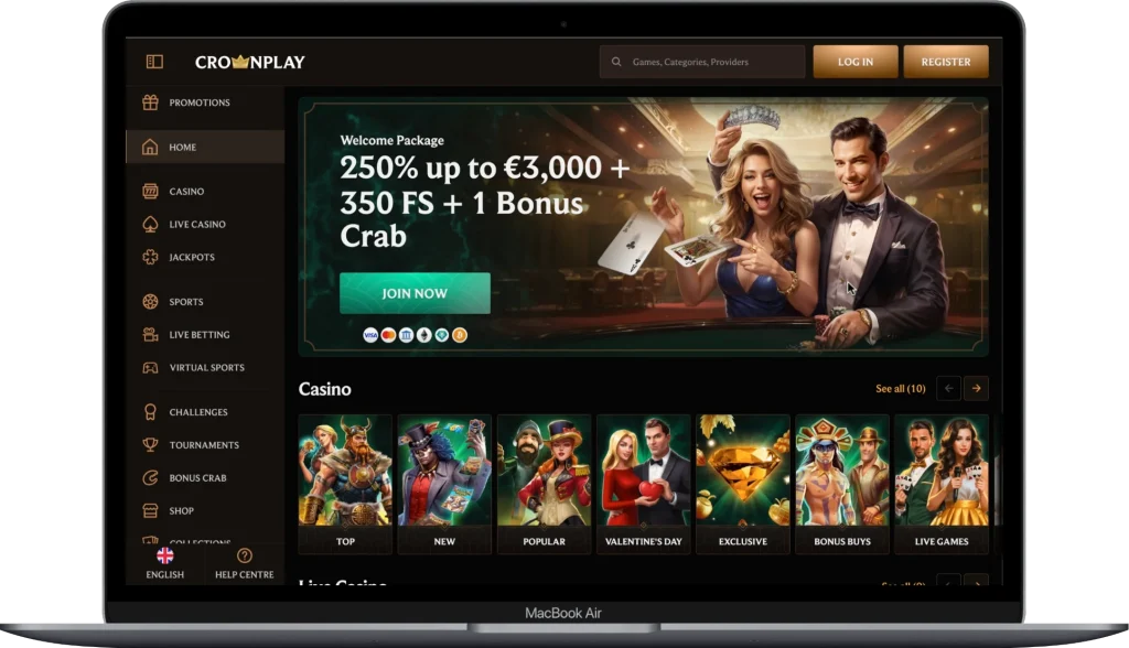 CrownPlay deserves a place among the Best online casinos in Canada due to its massive content offering and polished interface. The casino lists more than 8,000 games, covering slots, tables, live casino rooms and a complete sportsbook. The site layout is modern and responsive, making it easy for new players to navigate.